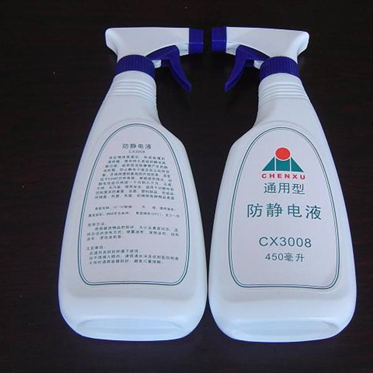 防静电液是一种透明液体,喷洒涂擦后会在物品表面形成薄薄一层的透明膜,改善物体表面的导电性,降低其表面电阻而消除静电。防静电液的防静电持久性有效期为数月至一年以上,并且受湿度的影响不大,湿度低于20%时仍然有效。